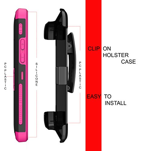 Look great and feel great with this premium protector! This case is designed to offer you offer you quality protection for your expensive device while leaving all the unnecessary bulk behind. A built-in kickstand offers you more convenience when viewing media on your device. Included with this combo set is a belt clip carrying holster designed specifically for use with the Armor case. Combined with the clear screen protector film, this Armor case combo set will offer your device the ultimate protection! Protecting your phone has never been this easier! Design -- The case itself will fit snugly onto your phone, with all features of your phone still accessible, and funactionable. This hybrid Armor case comes in 2 layers; the interior is made up of silicone skin gel, while the exterior is made up of hard polycarbonate (PC) plastic. Built along the hard polycarbonate plastic is the kickstand, which, when not in use, can be pushed back into the case.