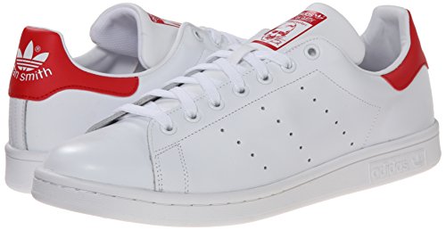 -. Binding : Textilien -. Brand : -. Color : White Red -. Department : Herren -. Feature : Leather Upper / Textile/Synthetic Lining / Synthetic Sole -. Label : -. Manufacturer : -. ProductGroup : Shoes -. ProductTypeName : SHOES -. Publisher : -. Studio : -. Title : Stan Smith White Red Mens Trainers - M20326