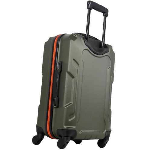 • Features a four wheel spinner system for easy rolling, recessed telescoping trolley handles with a push-button locking mechanism, and includes top and side carry handles