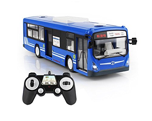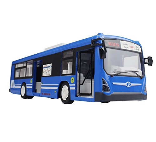 RC City Bus,CR 2.4GHz Remote Control City Bus Fast Opening Doors Transport Toy Bus With Realistic Lights and Whistle Sounds for Kids (Blue)