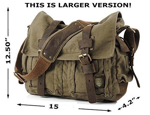 -. Binding : Apparel -. Brand : Serbags -. Color : Army Green -. Department : unisex-adult -. EAN : 0705422317605 -. Feature : This Military style canvas & leather messenger bag, good for up to 15" laptop. / Serbags is an American company, other sellers are from China and they sell low quality imitations of the bag. Second Photo will show you that this bag is SERBAGS brand. Only Serbags can sell this product with Serbags brand on ! / Dual leather straps with adjustment buckles, antique finish brass metal buckles / 2 large front pockets, 2 side pockets with strap. / DIMENSIONS: 15"(L) x 12.50"(H) x 4.20"(D) -. PackageQuantity : 1 -. ProductGroup : Apparel -. ProductTypeName : BAG -. Title : SERBAGS Military Style Messenger Bag - Premium Quality - -. UPC : 705422317605
