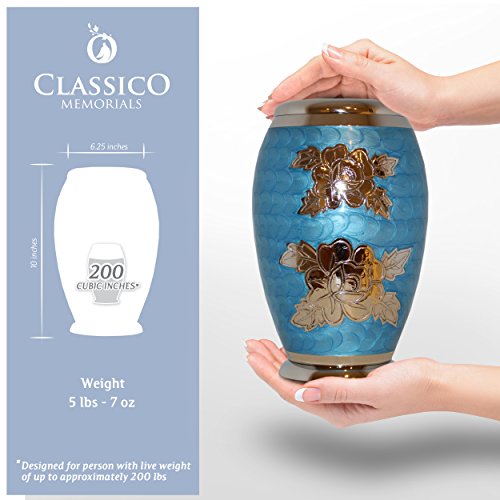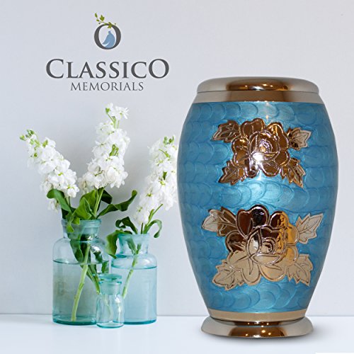 Classico Memorials - Cremation Funeral Urn for Human Ashes - Suitable for Burial (Blue Rose)