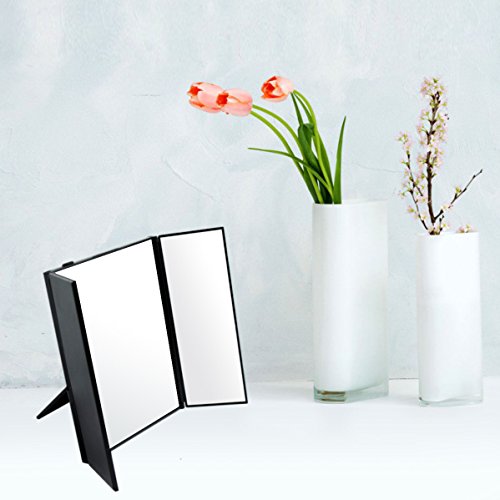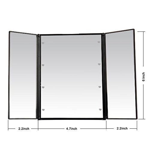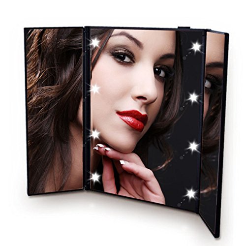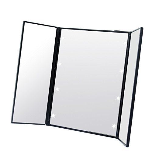-. Binding : Misc. -. Brand : Sea Elf -. Color : Black -. EAN : 0602456049291 -. Feature : 3-side mirror offers you a wide-angle viewing / 8 heart-shape LED lights are specially designed for making up in dark or dim light / Foldable design makes the makeup mirror convenient to carry / Flexible stick stand allows you to adjust the height easily / The travel cosmetic mirror is an ideal gift for ladies and girls -. IsAdultProduct : 0 -. Label : Sea Elf -. Manufacturer : Sea Elf -. MPN : B01K1QWKUA -. PackageQuantity : 1 -. PartNumber : B01K1QWKUA -. ProductGroup : Beauty -. ProductTypeName : BEAUTY -. Publisher : Sea Elf -. Studio : Sea Elf -. Title : Tri-fold LED Lighted Makeup Mirror Battery Operated 3-side Travel Vanity Compact Foldable Mirror with Adjustable Stand, Black -. UPC : 602456049291