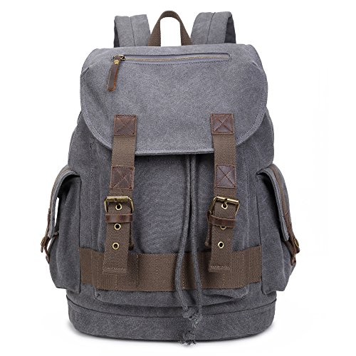 -. Brand : Mlife -. Department : mens -. Feature : High density canvas with first layer crazy horse belt; Retro bronze hardware / Easy to fit 14.1'', 14.6'', 15.6' 'latpop ,A4 Size Magazine, 4-8 clothigns; Suit for short journey / One large compartment with laptop sleeve and indepent zipper pocket.1 exterior front zipper pocket on flap. 1 exterior velcro pocket. 2 side hasp pockets / Adjustable padded shoulder straps for carrying comfort / Size: Approx. 14.17"L x 17.72"H x 7.48" W (Large capacity); Weight:2.42 pounds -. PackageQuantity : 1 -. ProductGroup : Apparel -. ProductTypeName : LUGGAGE -. Size : Large -. Title : Mlife Vintage Canvas Backpack Casual Bookbag Rucksack