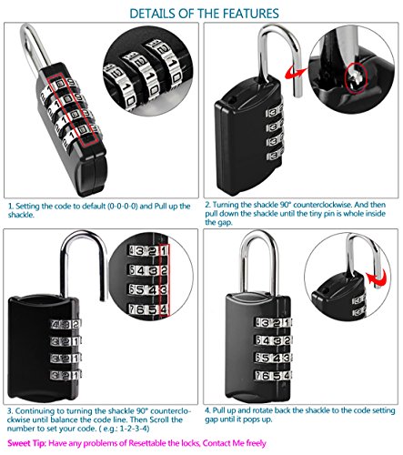 - ★ RESETTABLE - Include one black and one silver combination lock. Set your own personalized combination padlock. Very easy to use.Here is the Youtube Link: https://youtu.be/c9Ii3t3xLl0 . If you have any problem to use this lock and you can watch this video on Youtube. And in our listing, the picture also show the steps.