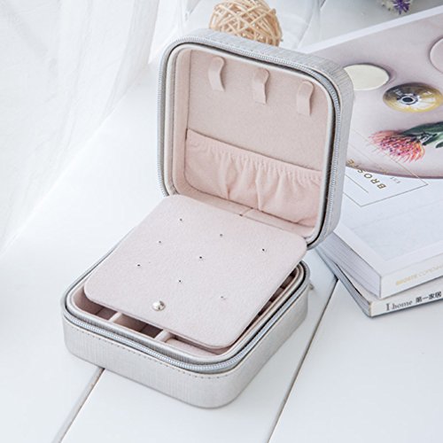 -. Feature : Mirror in the lid for easy makeup. 4 parts for rings, earrings, necklace and other small jewelries storage. / Simple and compact design with elegant outlook and could be used to storage collective. / Best for holding small daily wear jewelry and keep them organized by the bedside before sleep. / Zippered closure with black tone zipper pull. Measurements: 10cm x 10cm x 5cm(3.93"x3.93"x1.96") . / Great for carrying small jewelry (earrings, rings, necklace, bracelets, etc) when travel. Also the best Valentine's Gift, Birthday Gift, Christmas Gift for Your Girls.