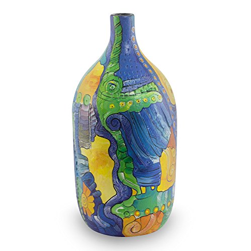 NOVICA "Abstract Caribbean" Ceramic Decorative Bottle