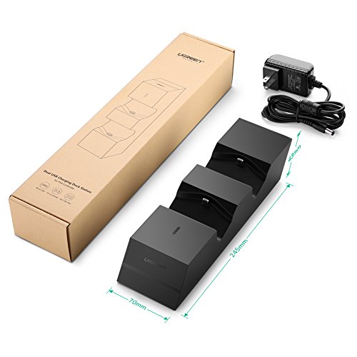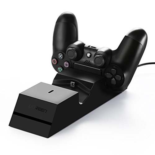 Dual Charger for PS4 Controller Ugreen Dual USB Charging Docking Station Allows you to securely store and charge up two Playstation 4 / PS4 / PS4 Slim / PS4 Pro Controllers simultaneously.