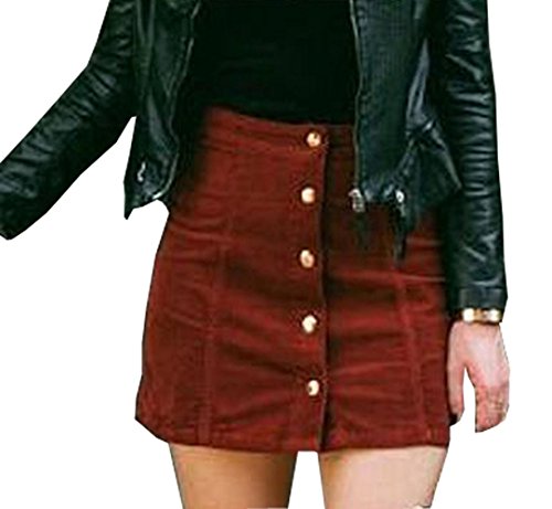 -. Feature : Material: Brown and maroon skirts: faux suede. Others: Corduroy.(Note: fashion moving is the only legal seller, others are fake, do not buy from them) / Button Closure Front, High Waist, Pencil and A-line Style / High waist,button closure front design, Above knee,soft and comfortable material / Occasion: party,club,wedding,evening,prom,cocktail,gown,casual,night out and daily life / Above knee length pencil skirt, mini skirt are the perfect neutral, so pair them with crop top, skirt leggings,sweaters,blouse,tunics,jacket or long coat