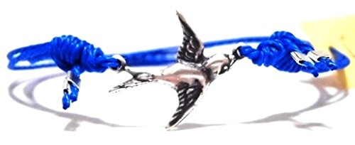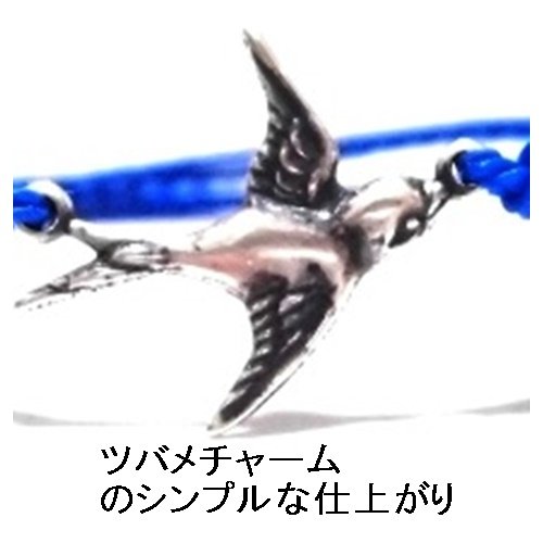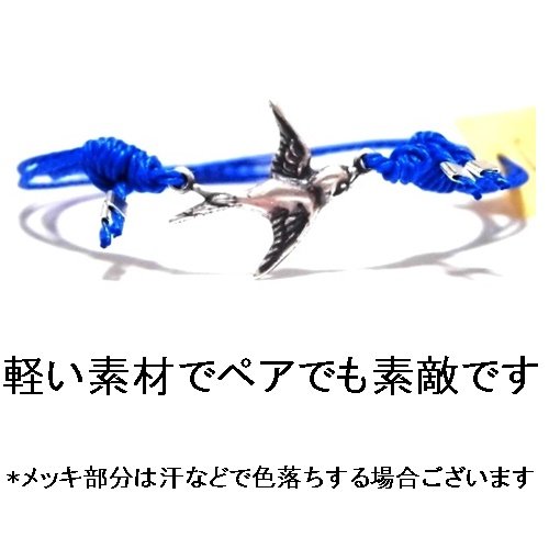 가벼운 끈이 사용한 경량형 악세사리,스타일리시한블루의 끈에 은색 제비의참를 붙였 심플하고 쿨한 실버 스왈로(swallow)《―》의 멋쟁이 팔찌입니다.