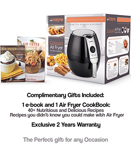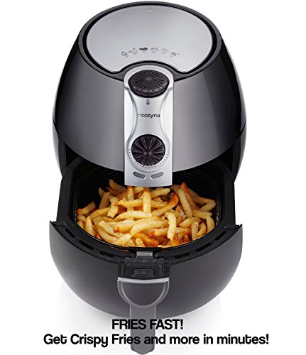 The Cozyna air fryer is the healthiest way to cook your favorite foods such as fries, and hamburger. By allowing you to cook with a spoon or less of oil, the air fryer is the perfect tool to make healthier meals. In average, you will use less than 70% of oil by using the air fryer. The Cozyna air fryer's parts are dishwasher-safe for easy cleaning. Included are 2 famous recipe books with over 50 recipes combined created exclusively for the air fryer. Here are its specifications: - 1500 watts - 3.2 liters capacity - fries, grills, bakes, and roasts food using a tablespoon or less of oil - 30 minute timer - adjustable temperature up to 392 degrees - dishwasher-safe for easy cleaning - includes 2 cookbooks with more than 50 recipes live a healthier lifestyle while still enjoying your favorite food just because you want to improve your eating habits doesn't mean you have to give up all of your favorite food with the Cozyna low fat fryer, you can cook in a variety of different ways, and that of course includes frying the best part about frying in the Cozyna air fryer is that you only need a tablespoon of oil or less so on average you will be consuming about 70% less fat than you would when cooking with a traditional deep fryer.Feature