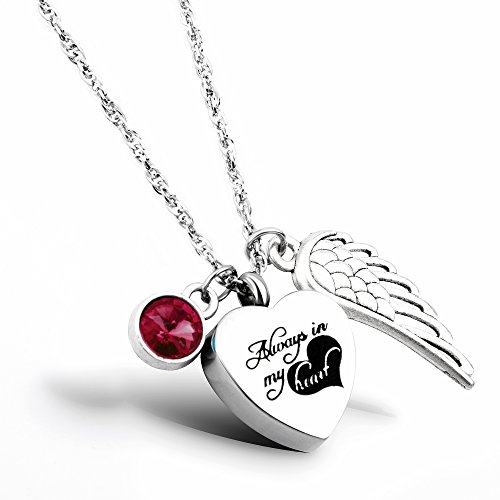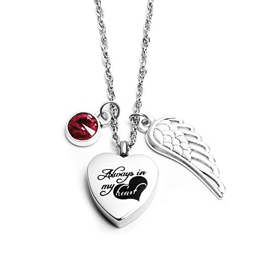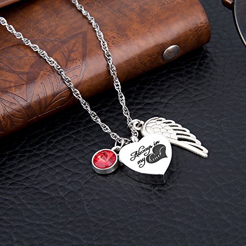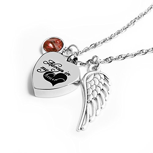 Cremation Jewelry Always in my heart Urn Memorial Necklace for Ashes keepsake Birthstone Jewelry (Jan)