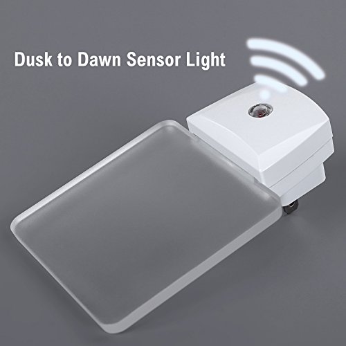 LIGHT SENSOR: Featured by dusk to dawn sensor, the night light will automatically turn on when dark and off in the morning, consumes less power(max 0.5 watts), bright yet energy saving