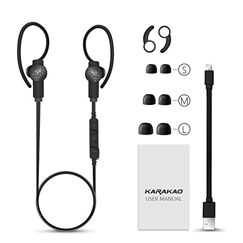 Karakao S1 Bluetooth Headphones 4.1 Wireless Runing Headset Workout Earphones with Mic for iPhone and Android (Black)