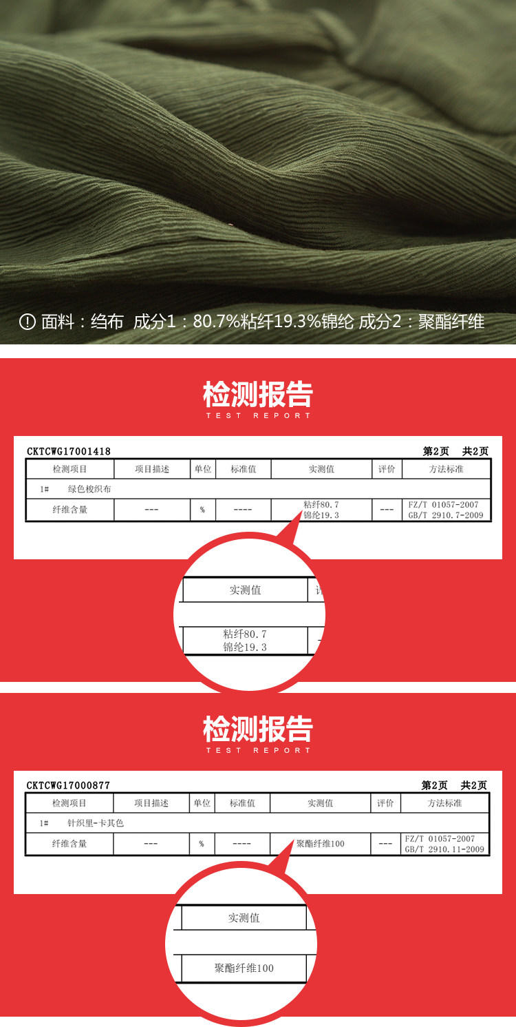 | 面 料:80.7%粘纤19.3%锦纶里 料:聚酯纤维颜 色:军绿 |
