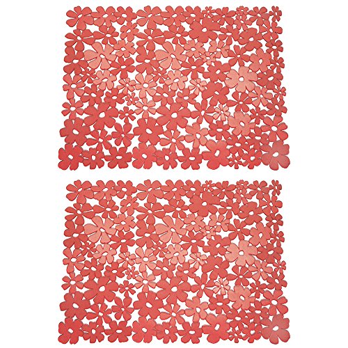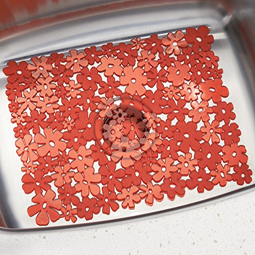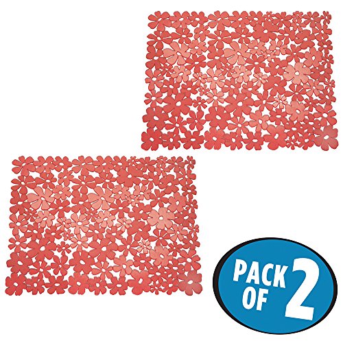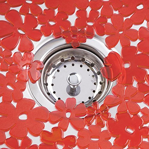 mDesign Blooming Kitchen Sink Protector Mat - Pack of 2, Large, Red