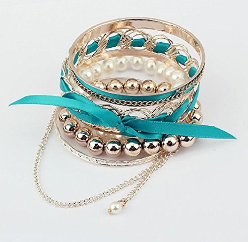 -. Title : [ミャオミャオ] Miaomyao ブレスレット バングル リボン パール ビーズ チェーン 6連 ゴールド レディース