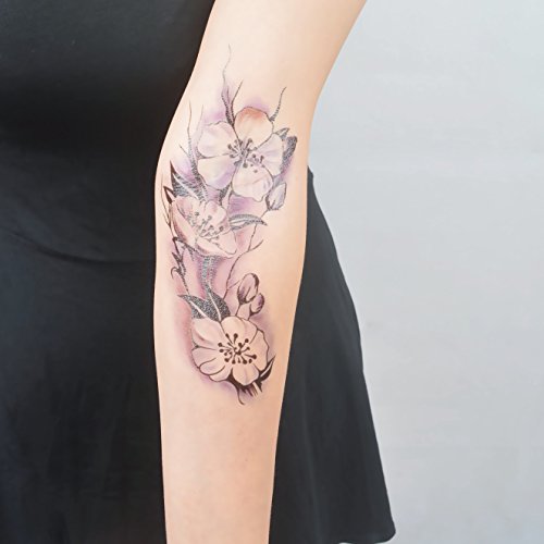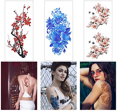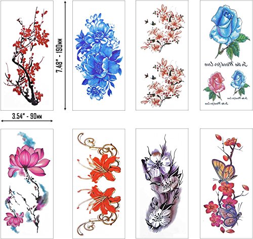COKOHAPPY 8 Sheets Watercolor Plum Lotus Chrysanthemum Peony Rose Lily Peach , Fake Tattoos Sticker for Arm Shoulders Waist Chest & Back - Night...