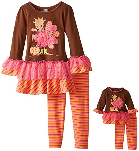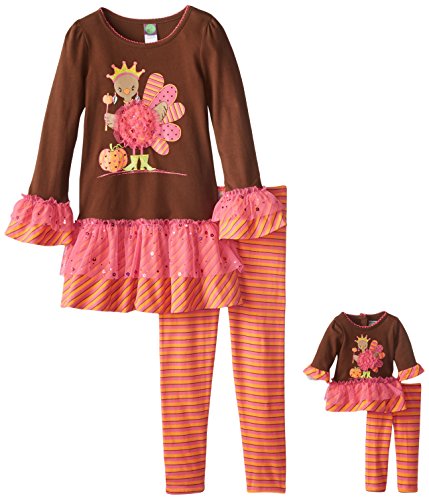 Knit drop waist turkey applique legging set