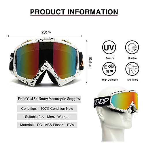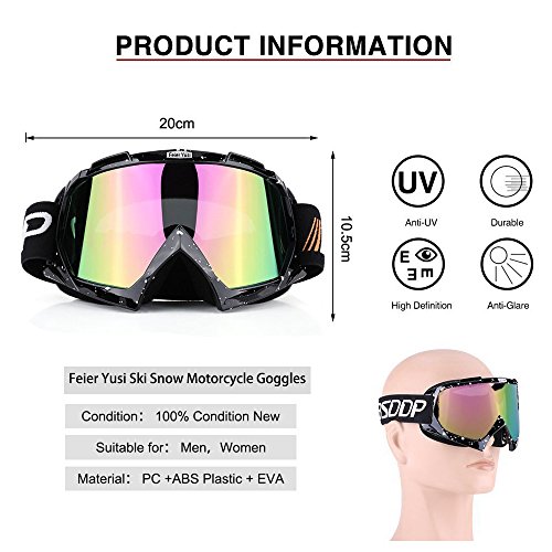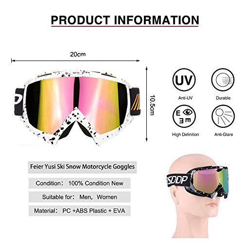 adult males and females, Feier Yusi sky goggles usa can be for outdoor riding, hiking, mountain climbing, skiing, surfing and other outdoor sports, has anti wind and snow prevention and anti - ultraviolet and so on many kinds of functions. Feier Yusi sky goggles also outer eye fit suitable for multipurpose usage, outdoor sport, kite surfing, jet skiing, airsoft, paintball, etc. "The eyes are the windows of the soul, in order to protect the eyes, let your eyes have an eye armor.You should choose a professional goggles,Feier Yusi ski googles glasses with all the accessories let you enjoy the happiness and security in outdoor sports ". Products include: *Feier Yusi Ski Goggles Protective. *Get FREE soft fabric ski goggles pouch. *Get FREE glasses cleaning cloth. *Get FREE product Instructions. 0