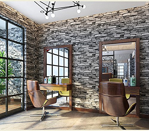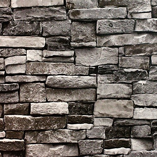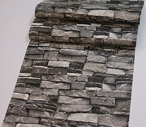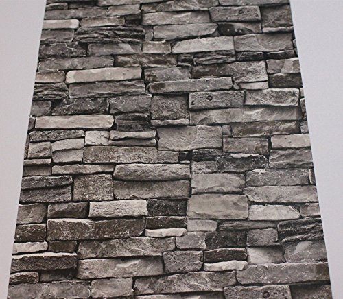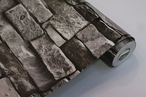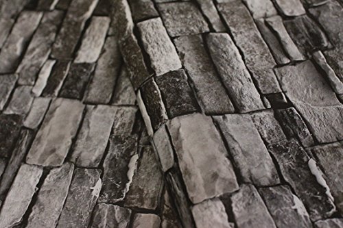 Faux Stone Brick Wallpaper, Vinyl Coated, Flat Print