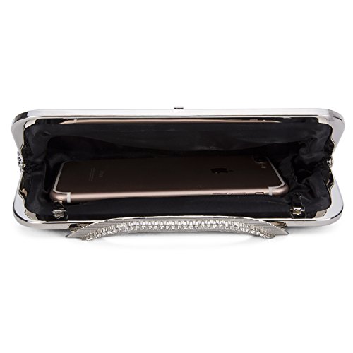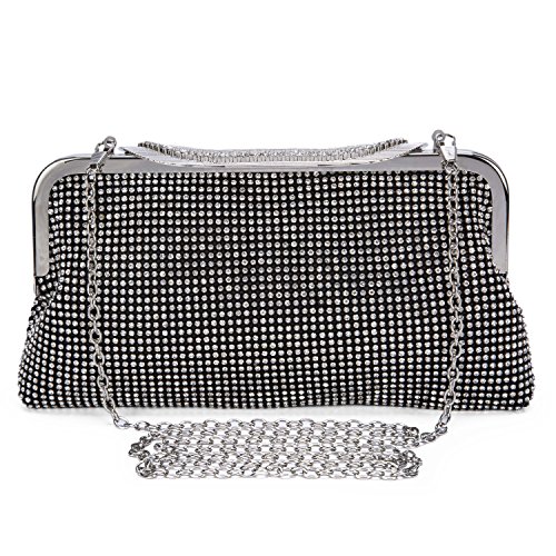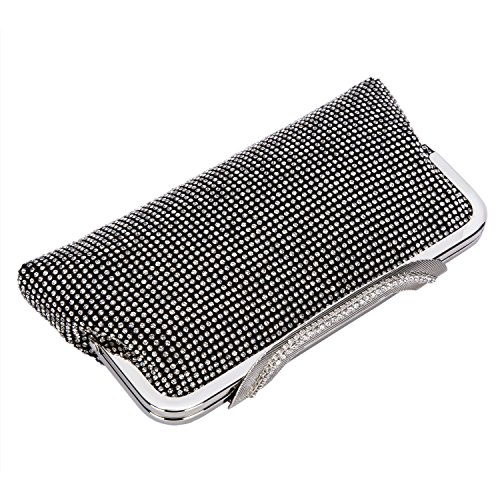 -. Feature : Dimensions:9.05"L x 1.18"W x 5.51"H,weight is 0.75 pounds.The clutch bag come with a long chain removable. / Fabric:Elegant bling rhinestone,high quality Polyester,light silver plated metal frame with document pocket / Features:Grade A rhinestone all over the clutch purse, speical bow-shaped clasp, elegant design perfect for all ages in special events, wedding. / Capacity:Large storage for your phone (FIT iPhone 7 plus, Samsung Note 5 or other big size mobile phone) lipstick, cash and credit cards, and other small items, interior pocket / Occasion:Perfect for wedding party, family reunion, prom, banquet and evening cocktail party and so on .