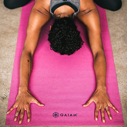 Gaiam's extra-thick premium 5mm Solid Yoga Mats provide a stable, non-slip surface for your yoga practice. Perfect for home or studio use, this mat provides additional cushioning to help protect joints. Manufactured free of the top six most harmful phthalates and latex-free, these mats are a healthier choice for both you and the planet! 68"L x 24"W x 5mm.