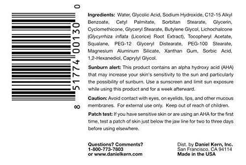 -. Feature : This travel size AHA+ contains a full 10% of pharmaceutical grade glycolic acid, the most that can be found over-the-counter. / Intensely hydrating. Powerfully exfoliating. Improves skin texture and leaves complexion visibly smoother. / Ultra-light feeling lotion spreads easily and leaves no stickiness. Fragrance & dye-free. / Also contains the full efficacious amount of licochalcone, a licorice root extract which powerfully calms acne-prone skin. / Formulated by Acne.org Founder Dan Kern.