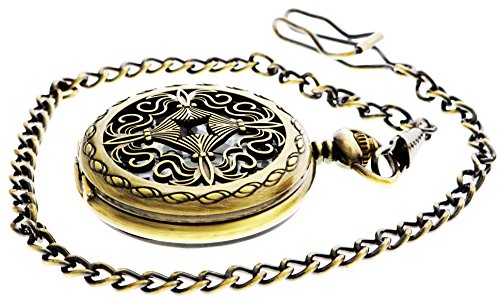 -. Title : Retro Design Bronze Openwork Cover Pocket Quartz Watch