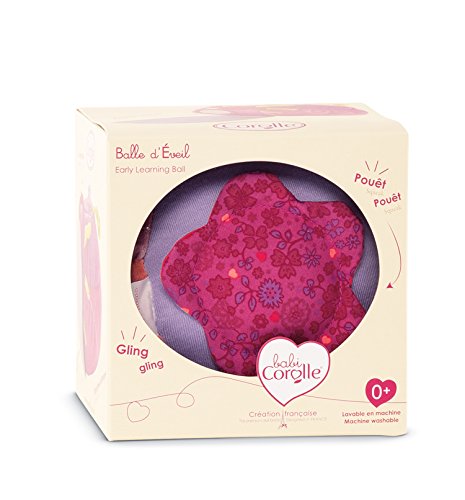 The adorable Babi Corolle Early Learning Ball makes a wonderful gift for ages birth and up. The irresistibly soft material invites hugs and cuddles. Babi Corolle Early Learning Ball features all the things that baby loves: mirror paper, stretchy ties, and fun squeaky sounds. Even a cute crinkle bee is attached for extra play. Babi Corolle Early Learning Ball will quickly become your little one's favorite play companion.Feature