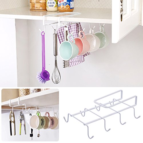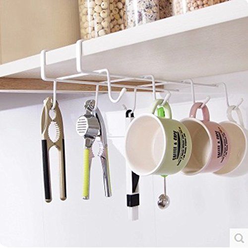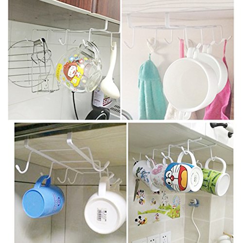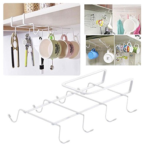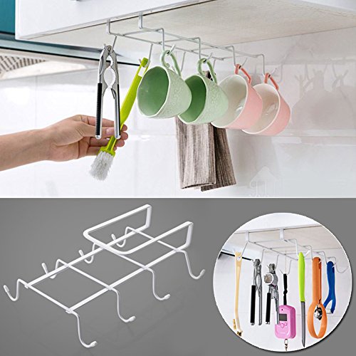 -. Title : Kicode Effective Multifunction 8 Hook Under Shelf Mugs Cups Wine Glasses Storage Drying Holder Rack Cabinet Hanging Organizer Rack for Ties And Belts