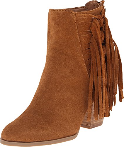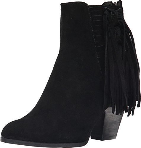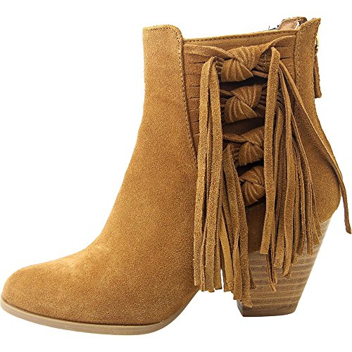 Fashion trend right fringe suede boot with side zip.