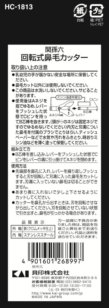 Kai Seki Magoroku rotary nose hair cutter [HC1813]
