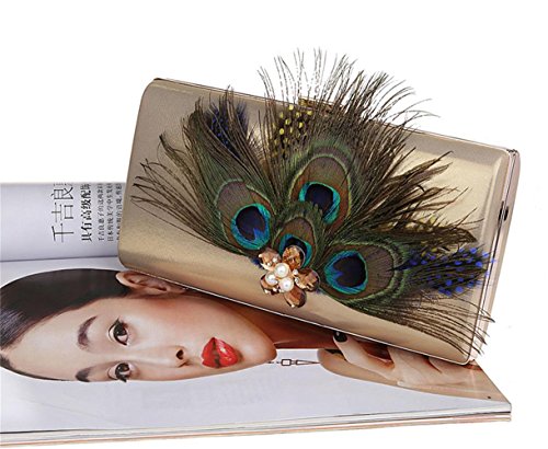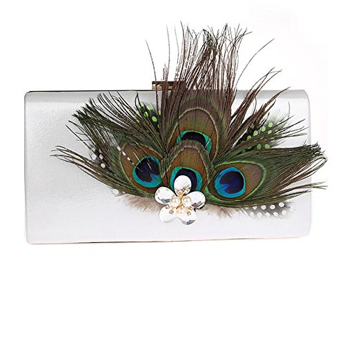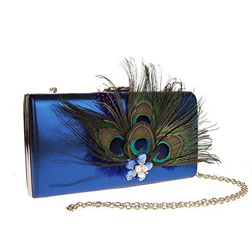 -. Feature : Materials:lining and polyester, Peacock Feathers. Gorgeous look and never out of style! / Dimensions:8.66"L x 1.57"W x 4.72"H, Weight is 450g. / Removable hidden-clasp chain for your choice to take it in hand or on the shoulder, acting as both handbag and shoulder bag. / Stylish shape and shiny exterior give this evening handbag a vintage and exquisite look that will set you ahead of the pack in terms of style. / Ideal for holding essentials like keys, mirror for touch-ups, lipstick.Suit for white dress as bridal or bridesmaid, and match to dress for graduation prom, and wedding,evening party.