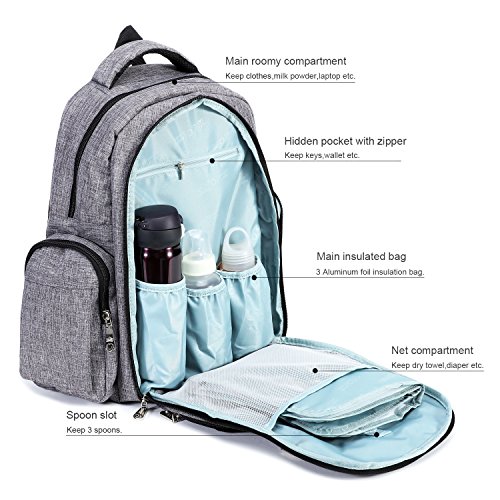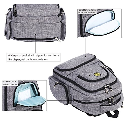 Big Sale - Baby Diaper Bag Waterproof Travel Diaper Backpack with Changing Pad and Stroller Clips (Gray)