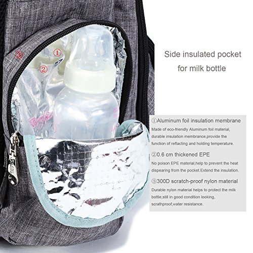 Very Large space and 16 pockets :4 insulated bottle holder,2 super Waterproof PEVA Pockets for wet item, one special pocket for pacifier, laptop sleeve inside, etc. large capacity that caters to two different age groups