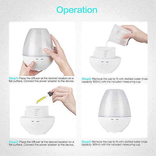 Oil Diffuser, Cool Mist Humidifier 160ml Ultrasonic Aroma Cool Mist Humidifier with 7 Color Light Changing Function And 4 Timer Settings
