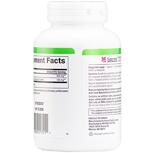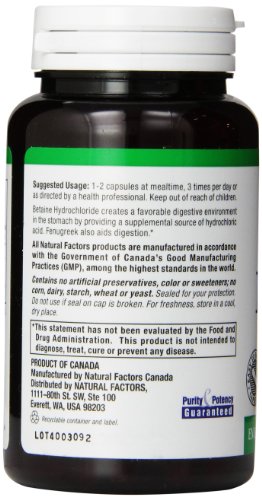 -. Title : Natural Factors - Betaine HCL 500mg - Supports Normal Digestion