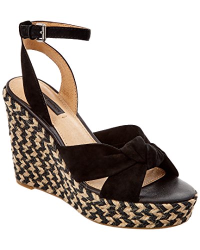 Product DescriptionThese suede Frye wedges are styled with a knotted vamp. Braided jute platform. Buckled ankle strap. Crepe sole.0