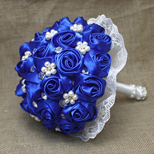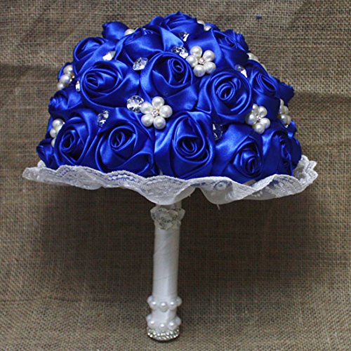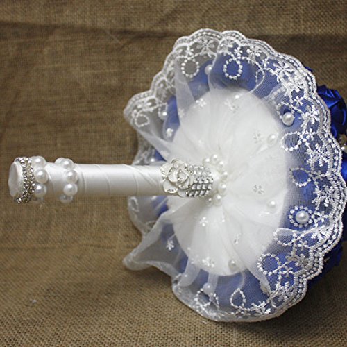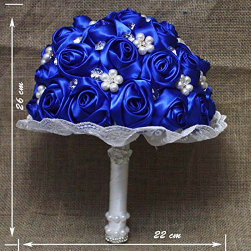 - Title : Hestian Luxury DIY Handmade Romantic Rainbow Silk Roses with Different Styles of Rhinestone Wedding Bouquet Come with a Headdress As a Gift (blue)