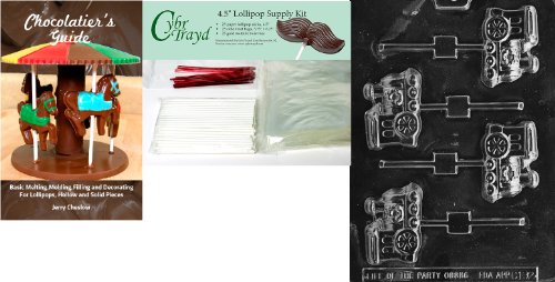 Cybrtrayd X-Mas Engine Pop Chocolate Mold with Chocolatier's Bundle of 25 Lollipop Sticks, 25 Cello Bags, 25 Red Twist Ties and Chocolatier's Guide