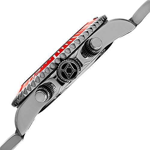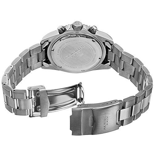-. Title : Akribos XXIV Men's Multi-Function Silver-Tone Case with Black Dial and Orange Bezel on Silver-Tone Stainless Steel Bracelet Watch AK950SSOR