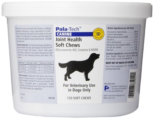Pala-tech canine joint health soft chews is a dietary supplement containing a unique combination of essential nutrients known to be beneficial to healthy joints and muscles. This combination of nutrients will help replenish joint fluids and optimize muscle performance strength and endurance.Feature