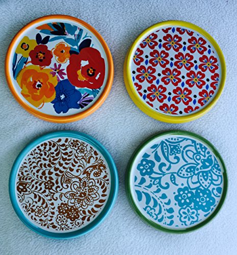 -. Title : Pioneer Woman Flea Market Coasters - Set of 4 - Colorful Florals