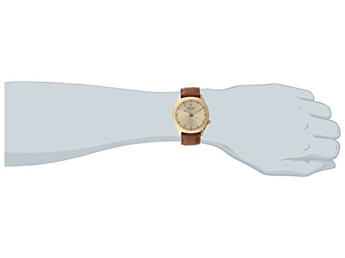 Stainless steel case back. Luxury leather strap with adjustable buckle closure. Round face, 41 mm. Three-hand analog display with precisionist movement. Elegant dial features gold-tone hands, minute track, hour markers, and brand detailing. Water resistant 3 ATM/30m. Imported. Your Bulova watch is covered by Bulova's 3-Year Global Warranty.Feature