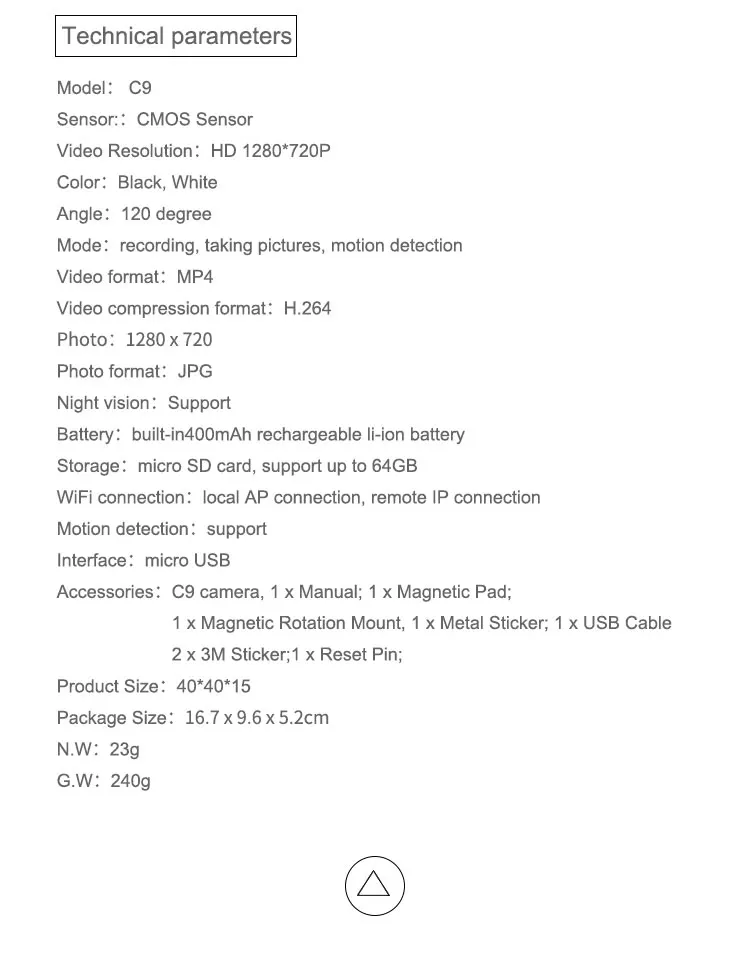 Model Number:C9 mini wifi camera
