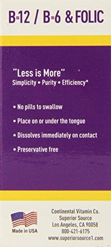 -. Binding : Health and Beauty -. Brand : Superior Source -. Label : SUPERIOR SOURCE -. Manufacturer : SUPERIOR SOURCE -. PackageQuantity : 1 -. ProductGroup : Health and Beauty -. ProductTypeName : HEALTH_PERSONAL_CARE -. Publisher : SUPERIOR SOURCE -. Studio : SUPERIOR SOURCE -. Title : Triple B-12 (9,000mcg) + B-6 & Folic