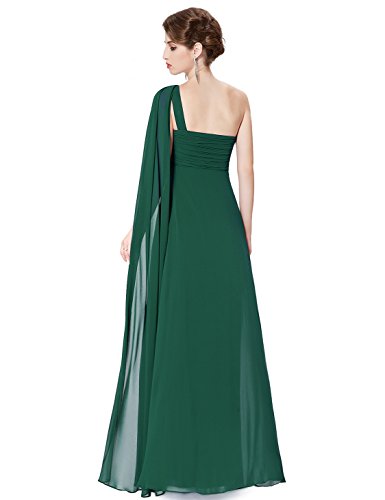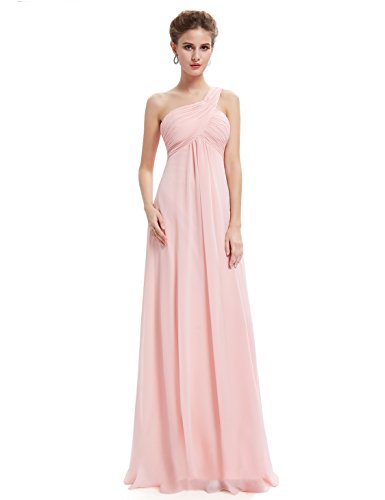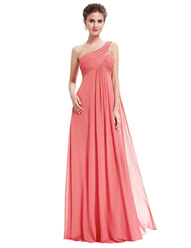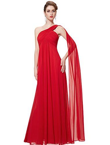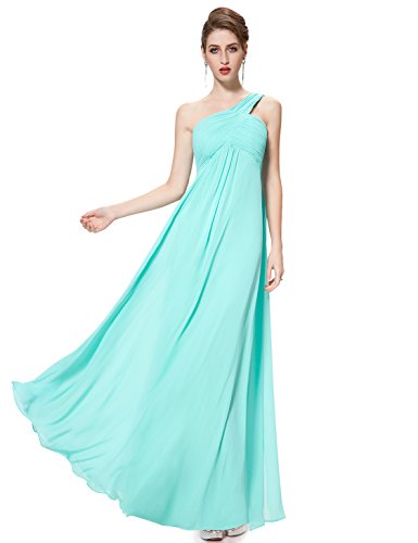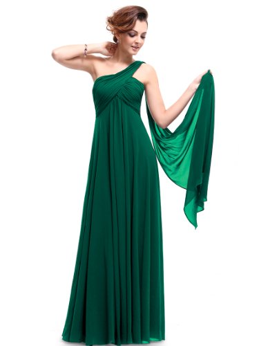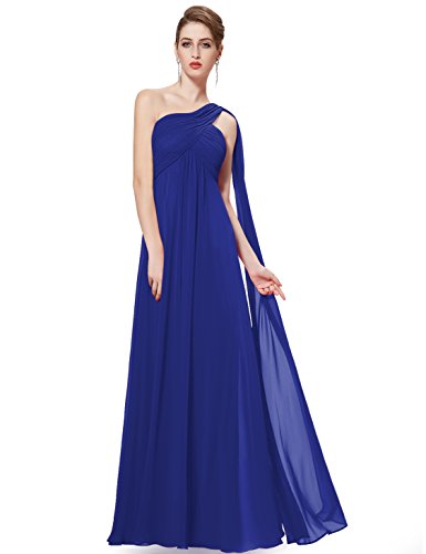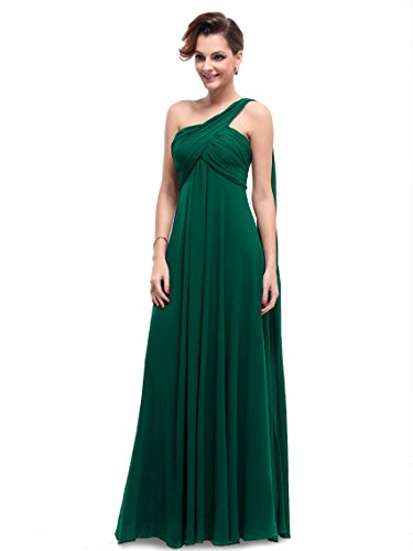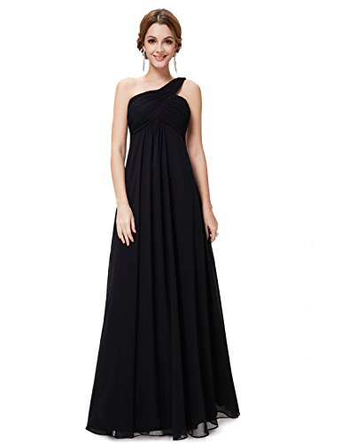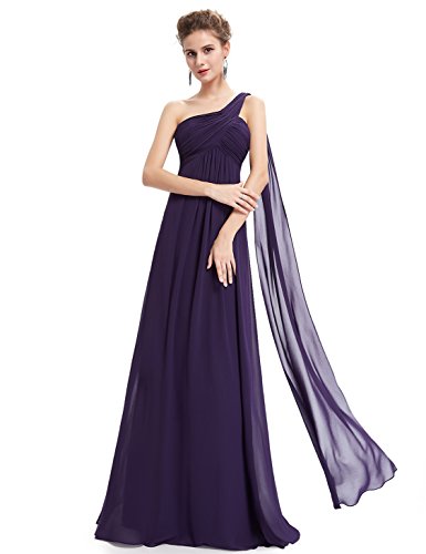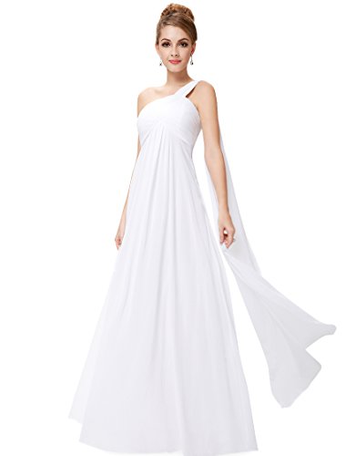This classic one shoulder design is fashion forward while still being a closet staple any woman needs. This dress features a ruched, fitted bust with a free flowing silhouette over the lower half of the body. This dress has been a favorite among brides and bridesmaids for more formal weddings while also being a continual favorite for formal events year roundFeature