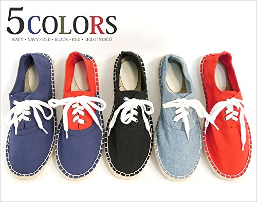 -. Feature : 【素材】ボディ:綿、ソール:ゴム / 【カラー】ネイビー・ネイビー×レッド・ブラック・レッド・インディゴ / 【Mサイズ】長さ:約27.5cm、幅:約10.5cm、全高:約10cm、ヒールの高さ:約1.5cm / 【Lサイズ】長さ:約28cm、幅:約11cm、全高:約10.5cm、ヒールの高さ:約1.5cm / モデル身長178cm 体重60kg Lサイズ着用