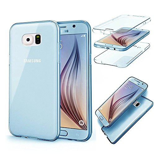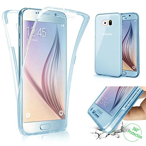Galaxy S6 Case,PHEZEN Scratch Proof 360 Front and Back Full Body Protection Semi Transparent Flexible TPU Bumper Case Anti-Scratch Protective Case For Samsung Galaxy S6, Blue